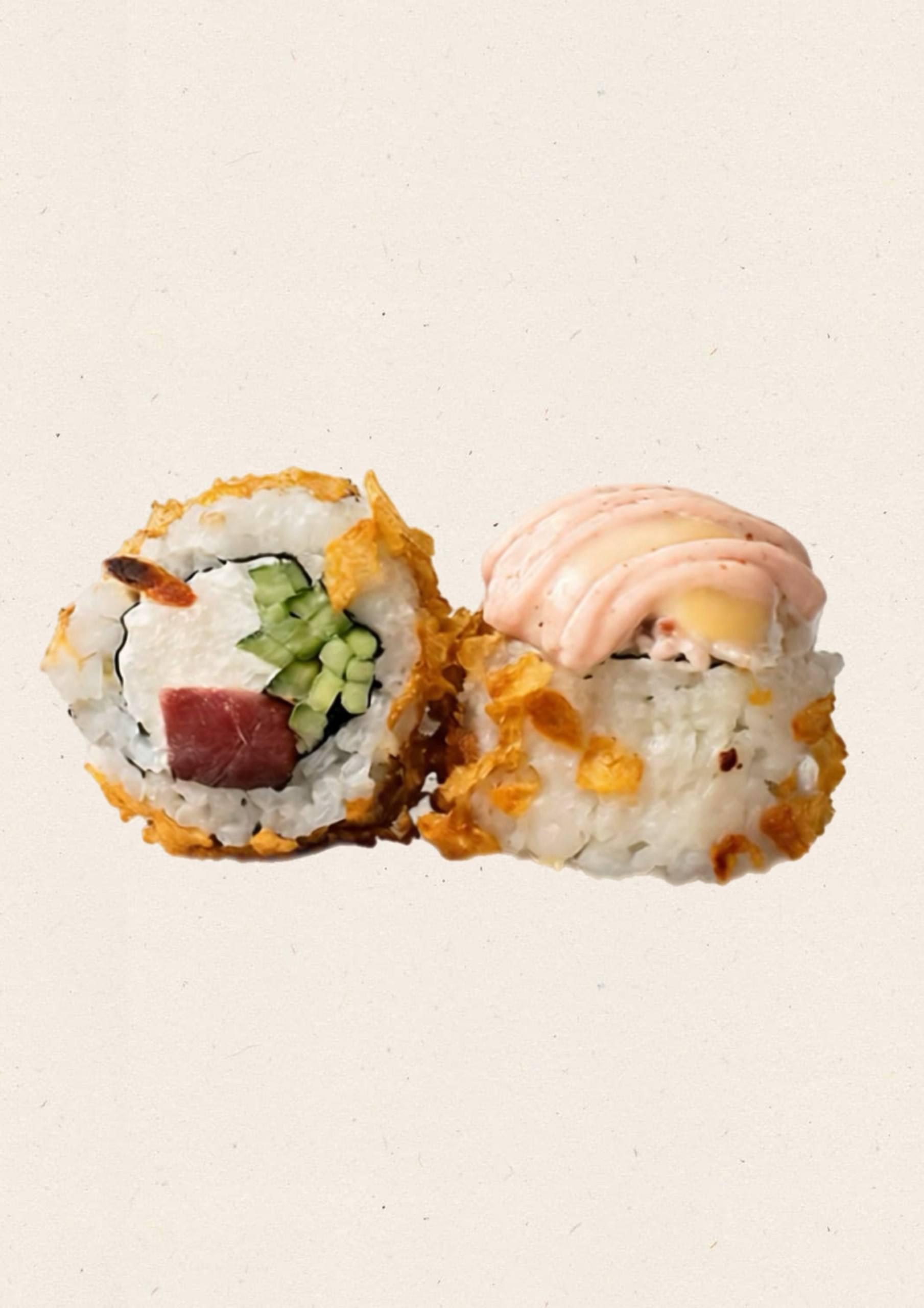 НОВИНКААБУ-ДАБИ430 ₽рис,нори,огурец,тунец,краб,сливочный сыр,фирменный соус,спайси,лук криспи8шт250грЗаказать