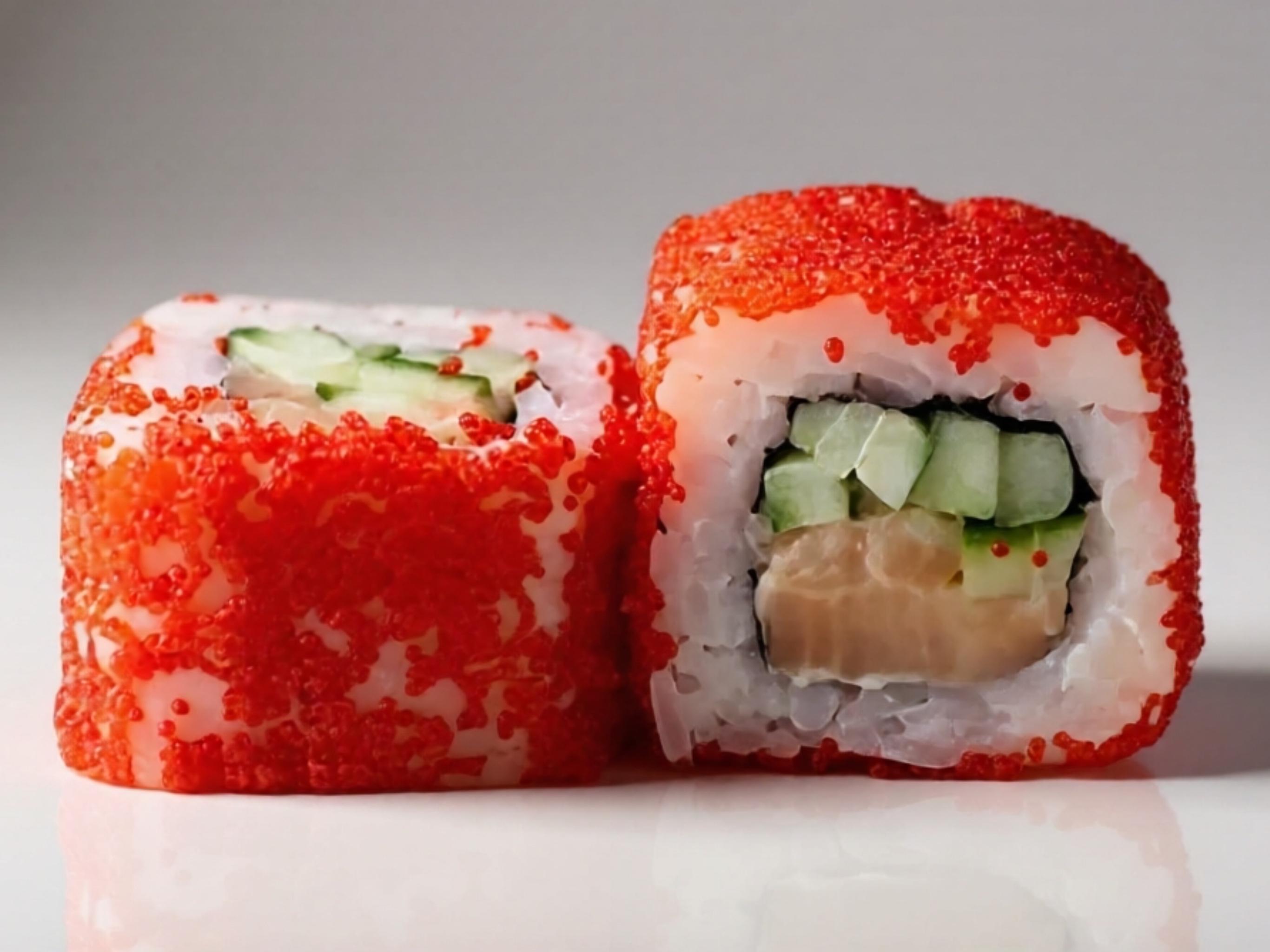 рис,майонез,огурец,лосось,масаго красная