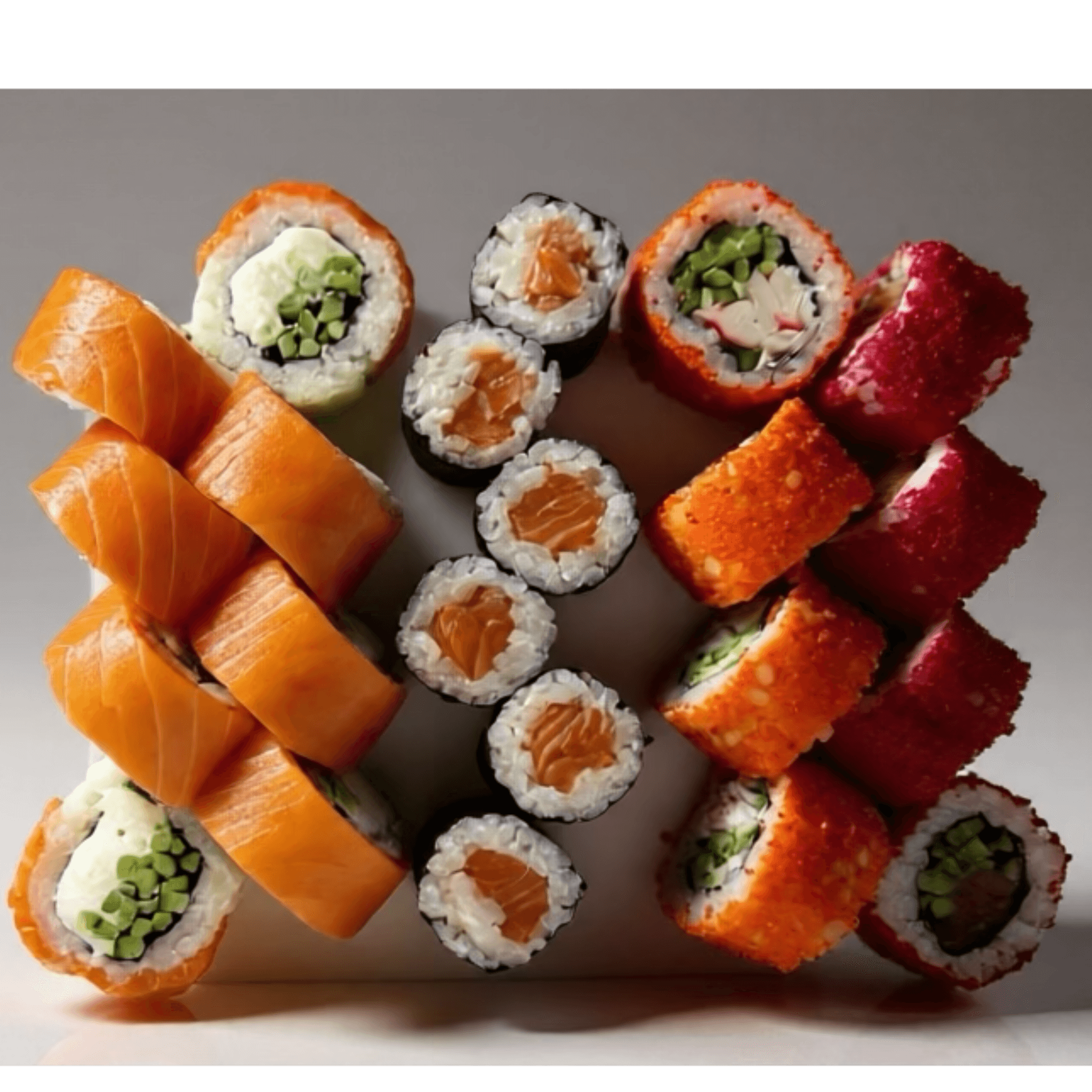 Калифорния лосось (4шт); Калифорния краб (4шт); Филадельфия классик; Лосось классик