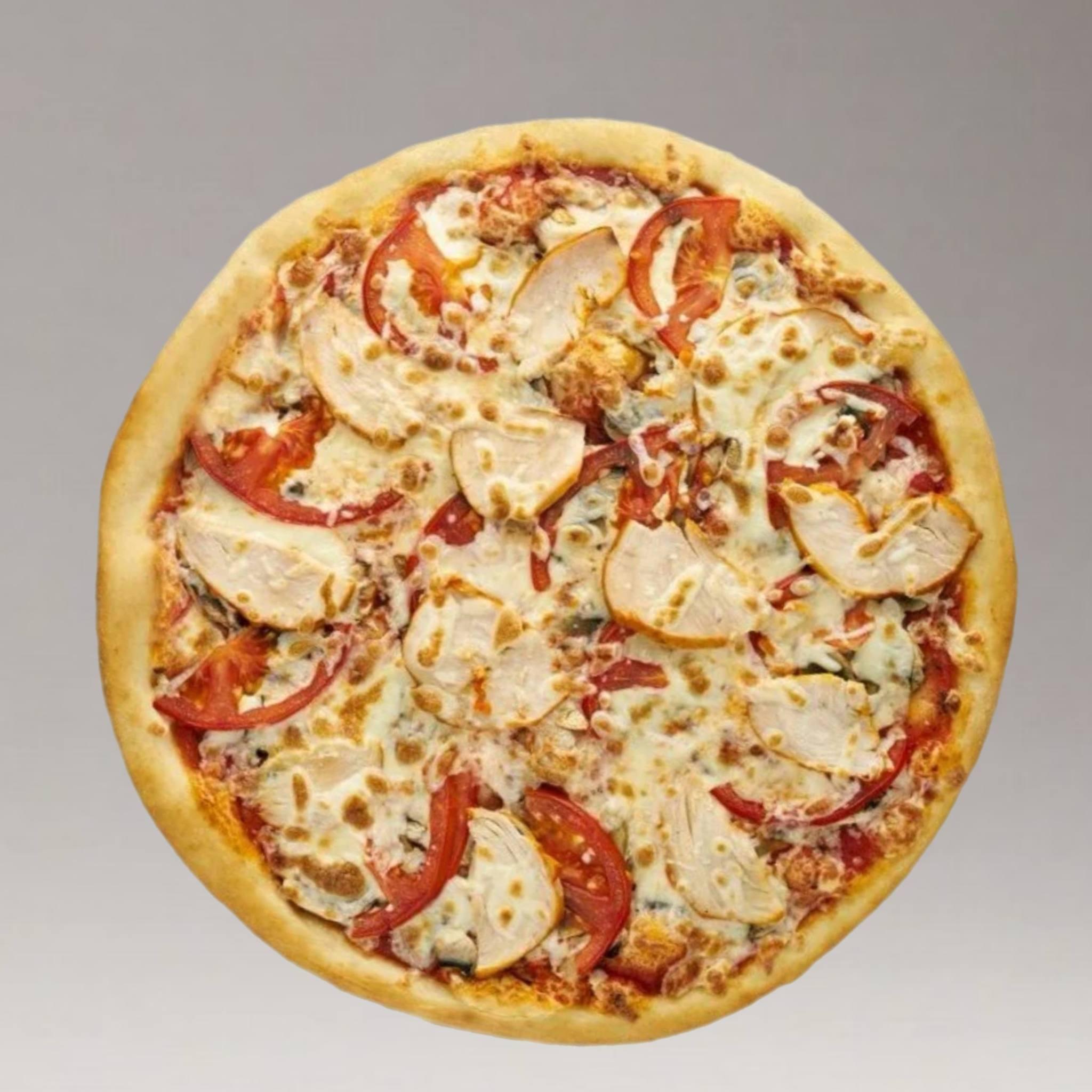 тесто,соус томатный,моцарелла,филе куриное,томат,лук криспи,прованские травы