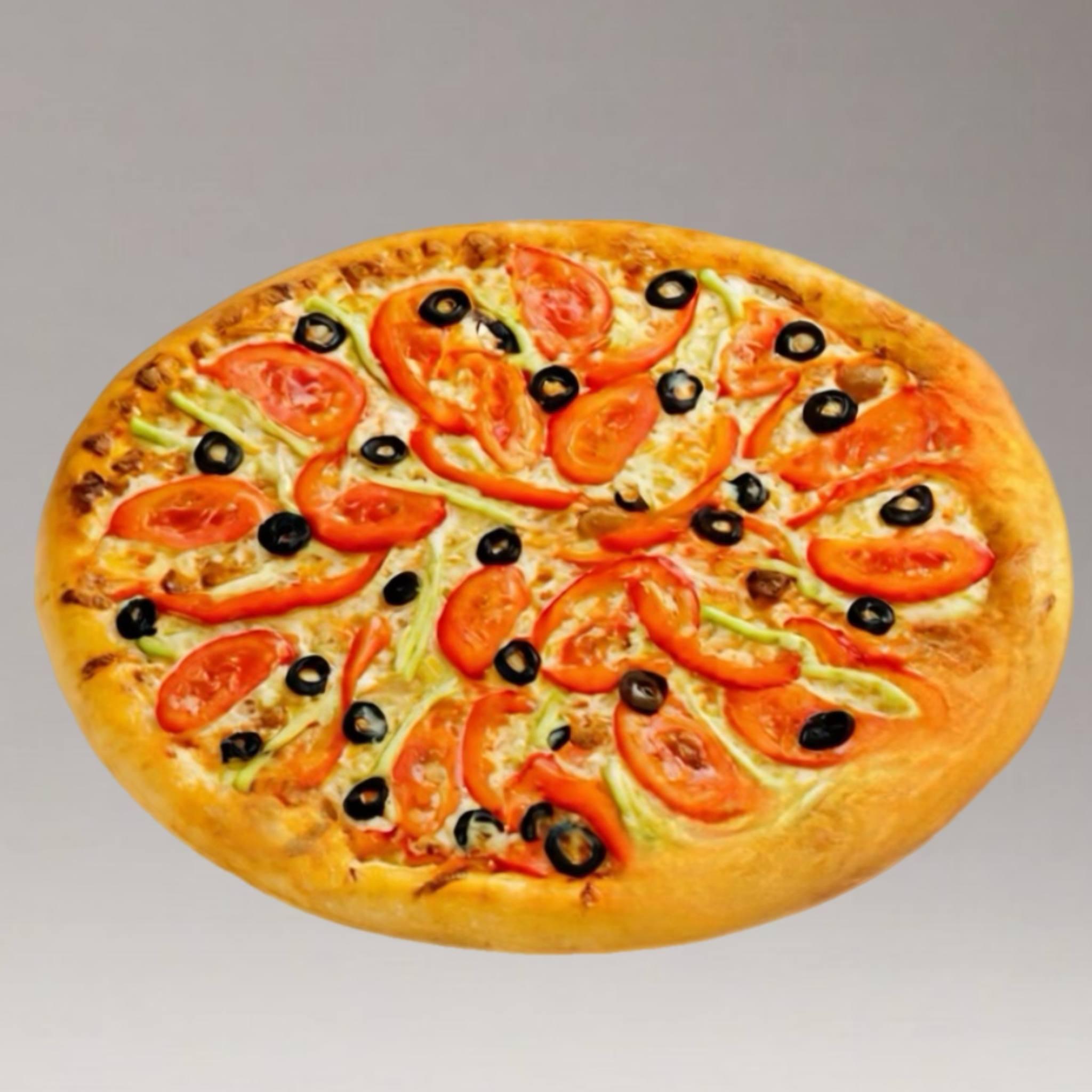 тесто,соус томатный,сыр моцарелла,томаты,перец болгарский,кабачки,маслины,прованские травы