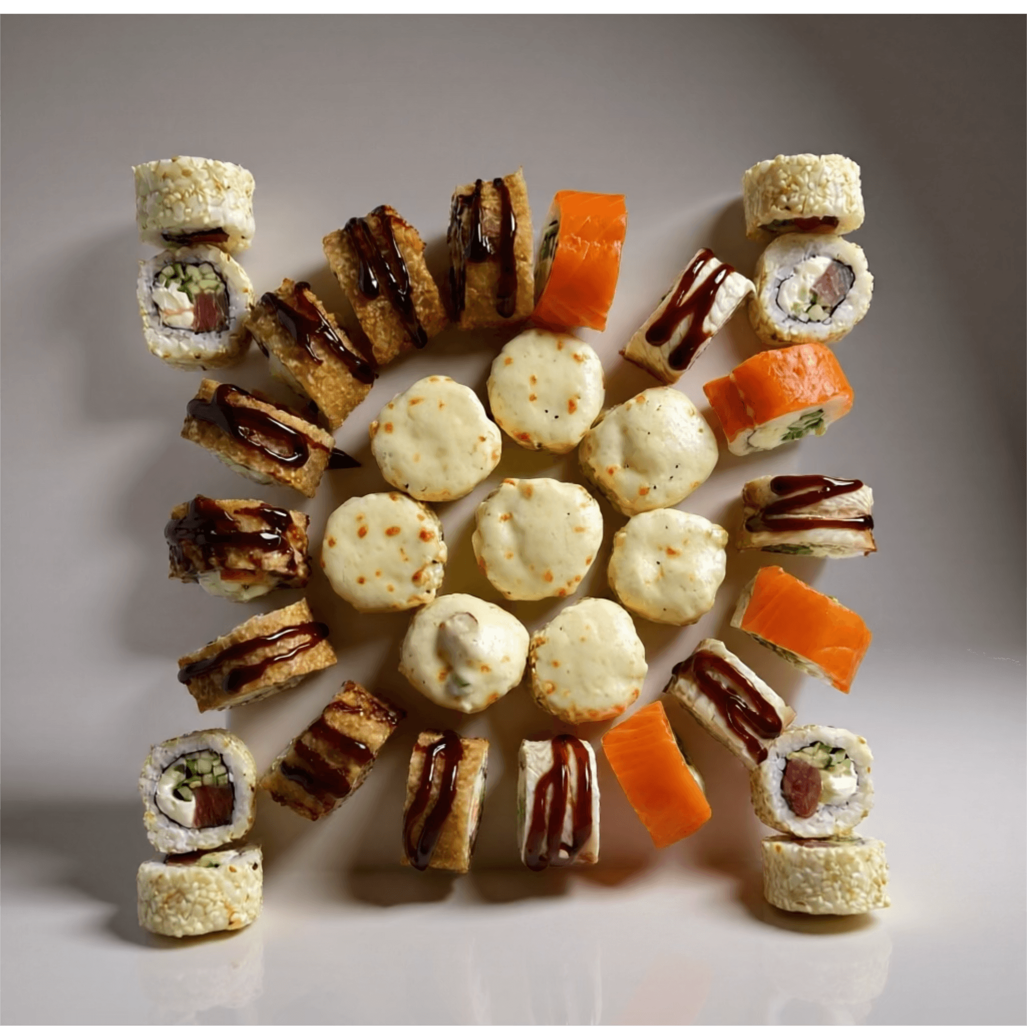 дракон 4шт, филадельфия классика 4шт, туна панир 8шт, чат роллс 8шт, эби темпура 8шт
