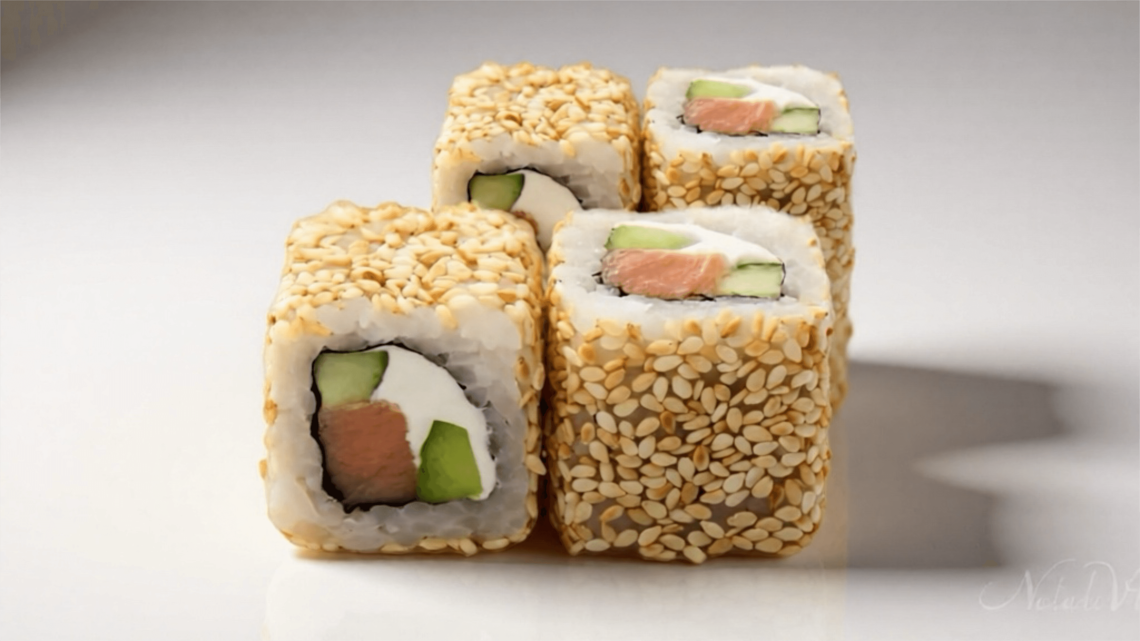 рис,сливочный сыр,огурец,тунец,кунжут
