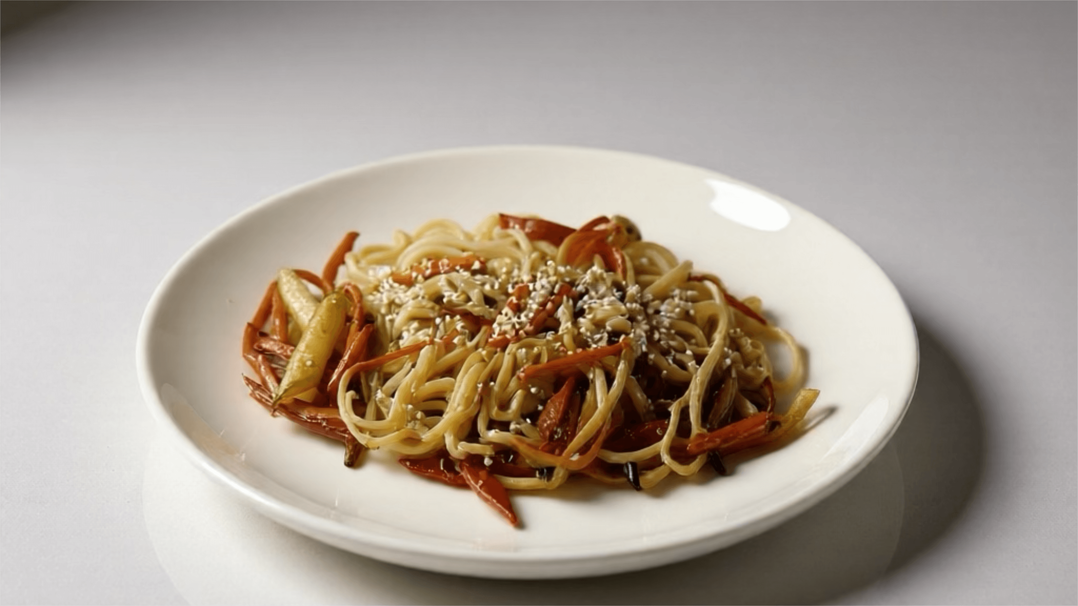 Лапша Удон, сладкий перец, лук репчатый, морковь, кабачок, соус фирменный, чеснок