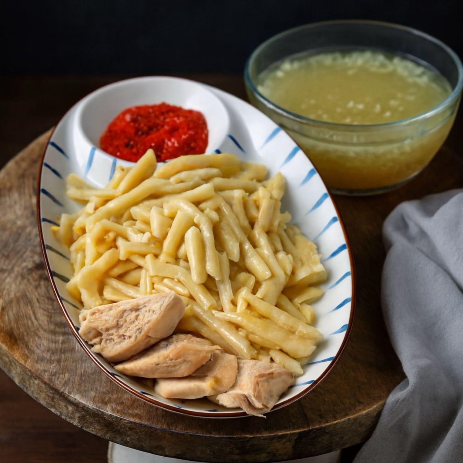 курица,галушки из теста,чесночный соус,куриный бульон,соуса (аджика\сметана) идут отдельно см.меню соуса